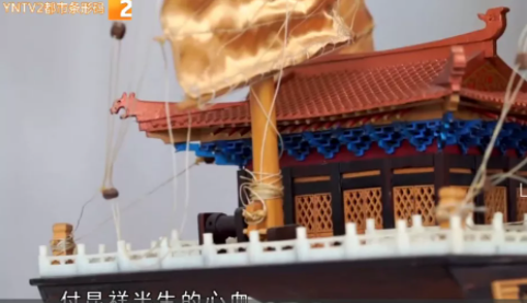 我们不曾目睹一艘船模制作日日夜夜所消磨的智慧与汗水,也无法体会打磨中细碎木屑飘入鼻孔的感觉,当船模带着匠人双手的温度穿越历史出现在我们眼前,它就完成了自己的使命。付昆祥心里也一直有一个关于"航海"的梦想,甲板上的"故宫",将带着十年如一日的工匠精神,一直航行下去。(YNTV2都市条形码 记者陈璐 常恩豪 实习记者赵慧灵)
