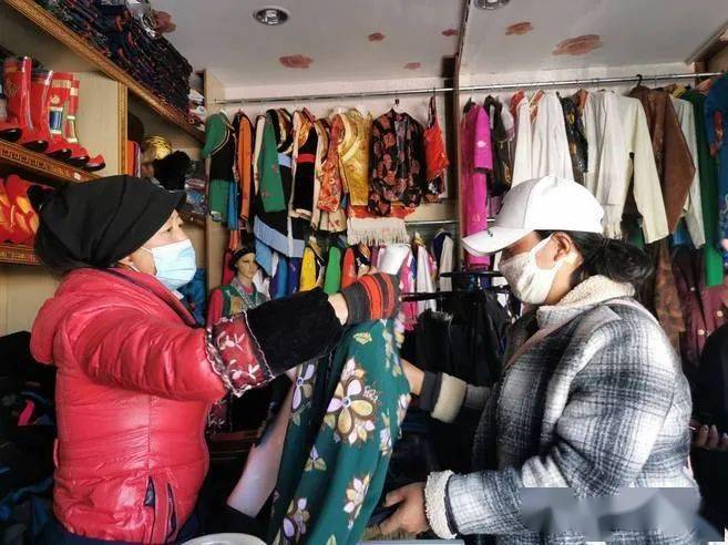在藏装店里前来订制新衣的扎史央宗,脸上的喜悦之情不言而喻。