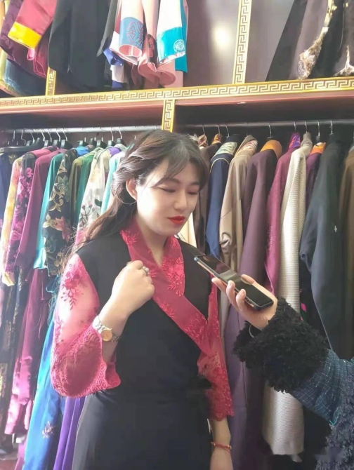新年期间,除了要准备味美色香的各类传统美食之外,一件量身定制的精美传统服饰也必不可少。常年在香格里拉城里务工的拉姆,正在考虑为家人订制新年藏装。