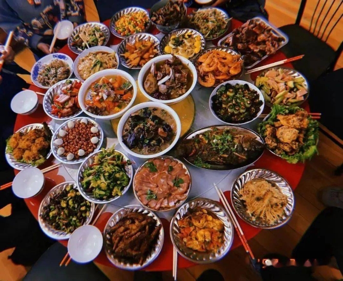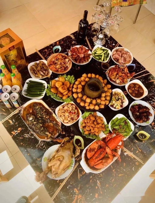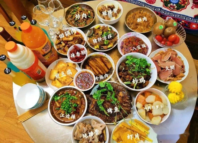 不同于外面下馆子的菜,年夜饭讲究的就是一个年味,一个家乡味。排骨和猪头肉都是自家养的猪,香肠是姑妈亲手腌制的,配上小朋友们最爱吃的炸乳扇,家乡的味道在唇齿间迸发。