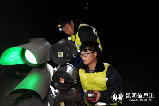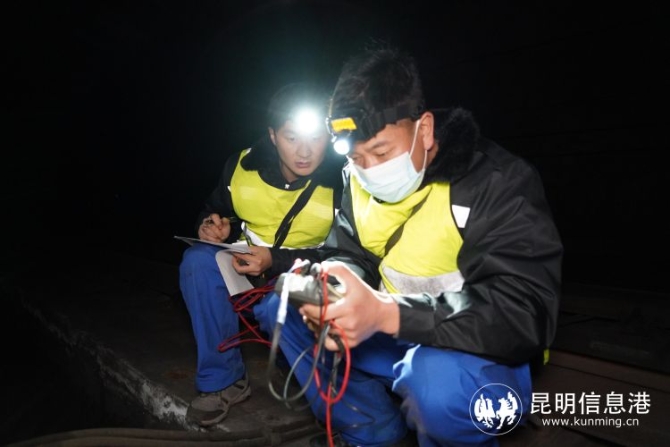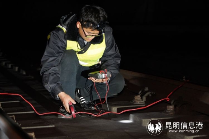 昆明信息港讯 记者上官艳君 通讯员周靖博 何思远 2月15日0时,在云南楚雄站工具金属碰撞声叮咚作响,在深夜格外明显。15名小伙身背工具包,整齐列队前行,在寒风中开始凌晨的信号设备集中检修。