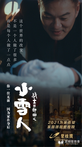 2021年的春节前夕,碧桂园集团推出《为家而绽》新春影片,这部影片分为三个系列,均是根据真实人物故事改编,讲述中国人的普通但又不平凡的故事,“每个人都是家的战士”,致敬每一个为美好而奋斗的中国人。