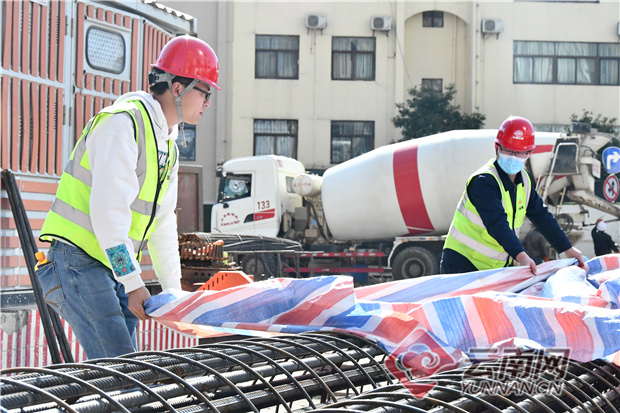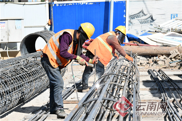 新春佳节是合家团圆的日子,而在昆明地铁5号线土建3标圆通公园站、白云路站建设工地上,仍是焊花飞溅、机声轰鸣,演绎着春节期间不停工的劳动“交响曲”。