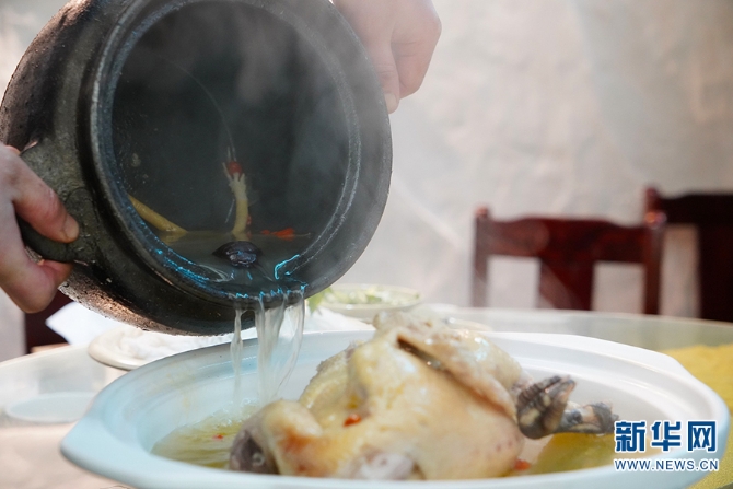 用当地烧制的土罐炖土鸡(2020年12月30日摄)。新华网发(李丹/摄)