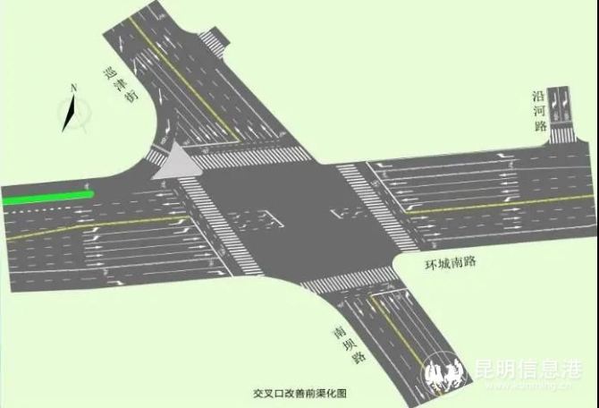 双龙桥路口交通组织优化前示意图(图源:昆明交警)