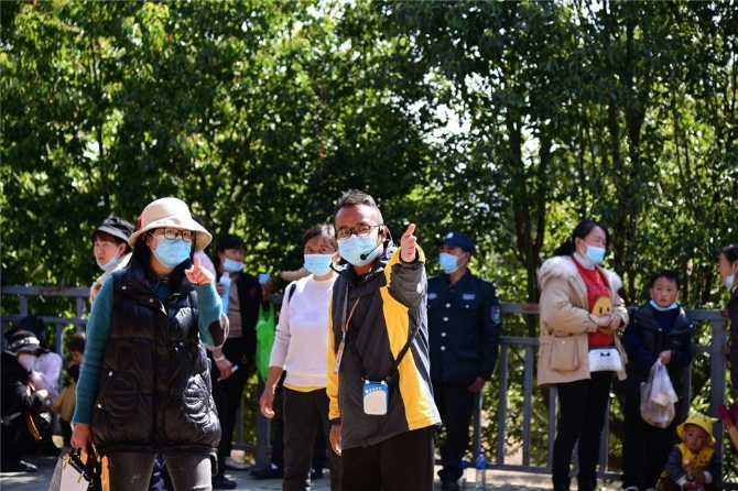 2021年春节期间,大理州各景区景点工作人员坚守本职岗位,为每一位游客做好服务的同时,耐心、细致地提示游客自觉佩戴口罩、保持安全距离,提示引导游客文明游览。
