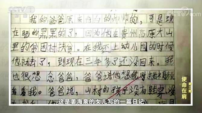 我的爸爸原来白白的、帅帅的,可是现在晒得黑黑的了,因为他在贵州高原大山里的贫困村扶贫,在我还上幼儿园的时候他就去了,到现在三年多了还没回来。