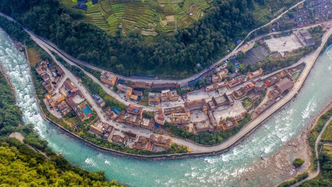 这是云南省贡山独龙族怒族自治县独龙江乡孔当村一景(2020年10月31日摄,无人机照片)。新华社记者胡超摄