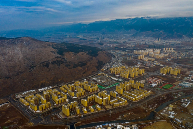 易地扶贫搬迁县城集中安置区会泽新城(2021年1月17日摄,无人机照片)。新华社记者江文耀摄