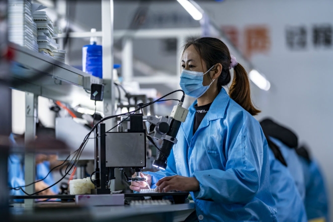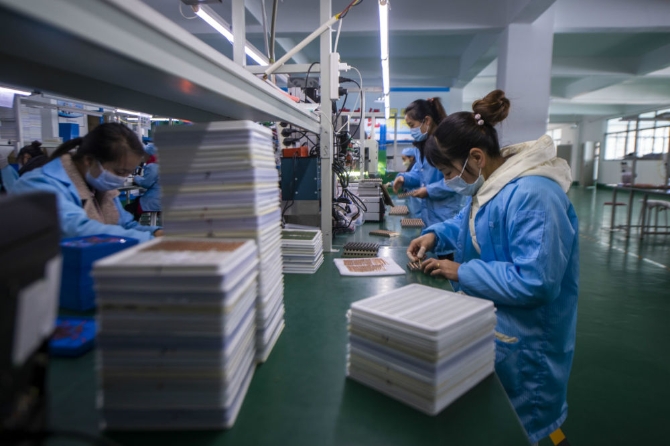 搬迁群众在会泽新城扶贫车间上班(2021年1月14日摄)。新华社记者江文耀摄