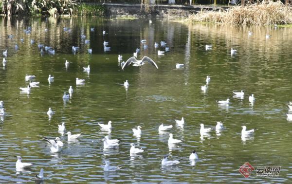 昆明市翠湖公园环境优美,享有城中之玉的美称。每年的10月3日至11月3日,都会迎来来自北西伯利亚的红嘴鸥,为翠湖公园增添生机。
