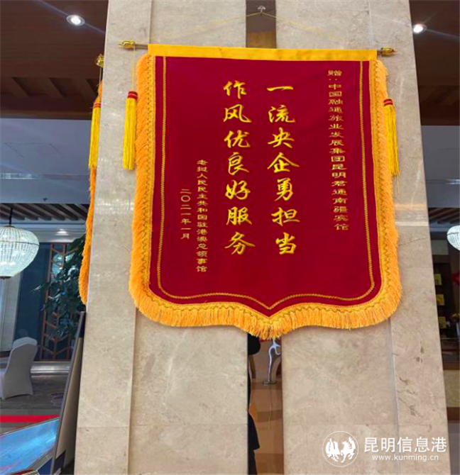 当天,酒店在大堂举行了简单而隆重的授旗仪式,南疆宾馆党支部书记、筹备组组长钊阳,代表宾馆接过老挝人民民主共和国驻港澳总领事馆赠送的锦旗,表示将继续做好服务入境人员隔离留观的保障任务。