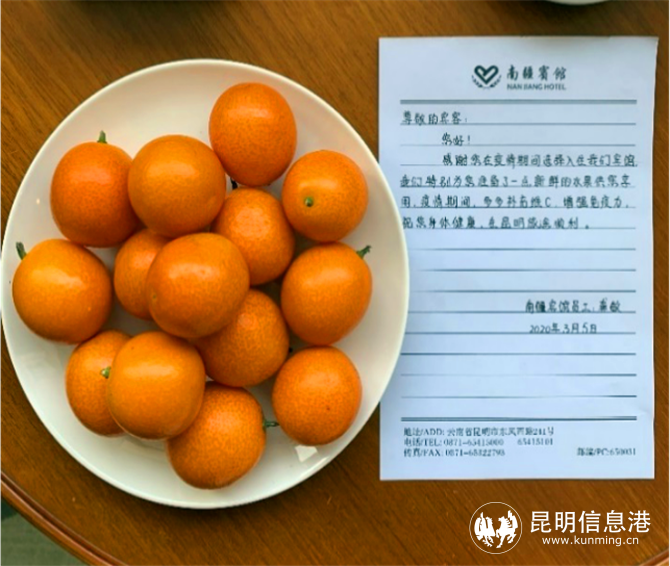 隔离病毒不隔爱,2020年4月初以来,南疆宾馆已承接了63批次3000余人次的入境留观人员。在这场没有硝烟的战争中,南疆宾馆人用自己的实际行动,凸显了央企品格和南疆温度。南疆宾馆收获的不仅仅是锦旗,更多的是客人的认可、赞赏与厚爱。这些,将激励着南疆宾馆全体员工继续坚定前行。(昆明信息港 记者江枫 通讯员肖芳 郭芮伶)