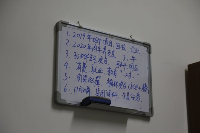 这是邱军办公室里他记录日常工作用的白板(1月23日摄)。新华社记者 马莎 摄