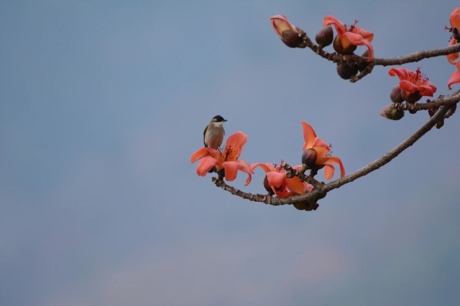 每年春节前后木棉花开时,吸引着众多的动物来啄食花朵、吸食花蜜和为其传粉。木棉树成了蜜蜂、木蜂、倭松鼠、印支松鼠、白喉红臀鹎、灰腹绣眼、长尾缝叶莺、灰卷尾、蓝喉拟啄木鸟等动物的乐园。