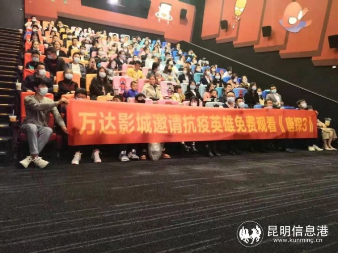 昆明信息港讯 2月24日,昆明市官渡区吴井街道办事处吴井新村社区居民委员会牵头发起的“感恩抗疫英雄,全国公益观影”活动,在昆明万达影城顺利举行,活动旨在向奋战在疫情防控一线的医务工作者表达致敬和关切之情,感谢抗疫英雄的付出。