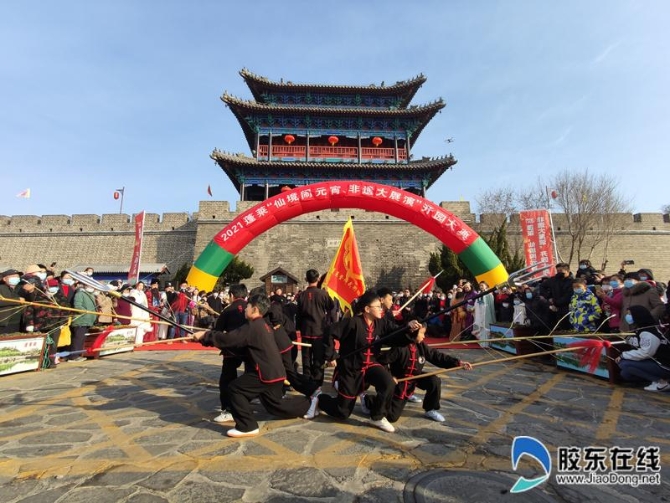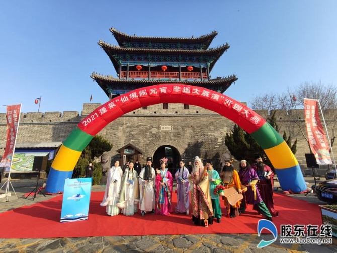 又是春暖花开时,“三牛”齐“犇”向蓬莱。“吉时已到,请各位嘉宾入园”,2月26日,在喧天锣鼓声中,蓬莱阁景区振扬门大门徐徐打开,象征仙境吉祥团圆的八仙真人秀演员,簇拥着大家缓步走进城门。“仙境闹元宵、非遗大展演”九大主题活动正式拉开大幕。烟台市文化和旅游局,蓬莱区委宣传部,蓬莱区文化和旅游局,蓬莱阁景区管理中心,潍坊市自驾游与房车露营协会,蓬莱非物质遗产保护研究会等相关人员参加活动。