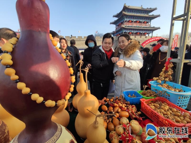 在非遗展区,蓬莱小面、剪纸、面塑、葫芦雕刻等15类非物质文化遗产技艺展演将持续三天,市民游客可以沉浸式的体验传统文化,寻找记忆里的过年气氛,在三仙山景区门前,秧歌、龙灯、旱船、踩高跷等演出,向市民和游客呈现浓厚的元宵节民俗和多彩的地域文化……“这个以八仙为题材的面塑,是由面粉和特殊材料做成的,它可以长期保存。”在蓬莱面塑传承人门进国看来,仙气遇见烟火气,这就是幸福生活的真谛;“本地取材,来源民间,这碗面有200多年历史了,它象征着源远流长。吃上一碗,一天都热乎乎的。”对蓬莱小面传承人王福禄来说,面碗里,天地在;“今天我们表演了一个庆祝丰收的好日子。我扮了一个耍毛驴的,毛驴高兴了,我们的日子也过的好”。对于大秧歌表演者宁玉航来说,大秧歌,扭起来,幸福生活“牛”起来。
