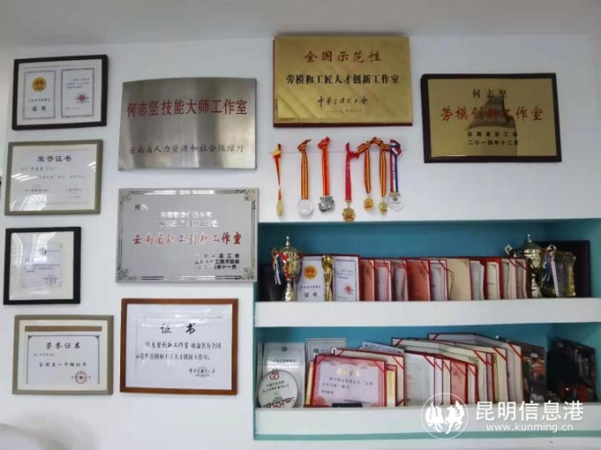 何志坚工作室陈列的奖状