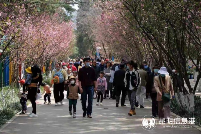 昆明信息港讯 记者杨雁 年年岁岁花似海,熙熙攘攘人如潮!2月28日,昆明动物园第二十一届雪兰樱花节暨第六届非物质文化遗产展拉启大幕,春日里最热闹的花事之一——圆通樱潮如约而至。
