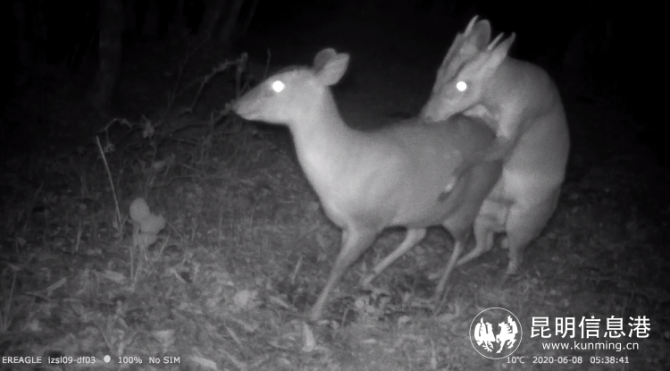 据悉,轿子山自然保护区内共设置有11条动物样线,安装红外相机一百余台,对不同区域、不同海拔及生境的野生动物进行野外监测。管护局工作人员在收集整理野外监测数据时,发现红外相机在夜晚多次拍摄到国家一级保护野生动物林麝及其他国家二级保护野生动物活动影像,其中有林麝爬树照片和麂子交配影像及照片。