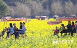 乍暖还寒的三月,在平坦的云南省保山市施甸坝子,油菜花竞相开放。空旷的田野上,一朵朵、一簇簇,春风拂过,黄灿灿的油菜花此起彼伏,蔚为壮观。(新华网 记者杨磊 吴丹 段晓波)