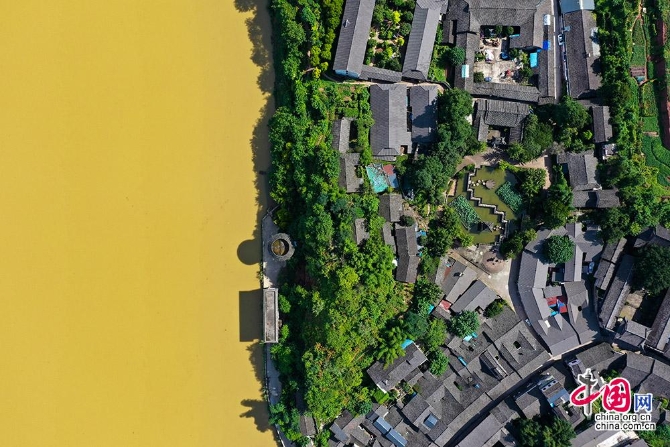 周子古镇,又名:周口镇、舟口,与相如故城(今锦屏镇)隔江相望。被誉为嘉陵江上最后的码头古镇。长约1000米的百年古街,隶属于四川南充市蓬安县管辖,是南充(司马相如故里)著名的旅游点,位于蓬安县下河街,周子古镇兴于唐宋年间,千年积淀,蕴育了厚重独特的码头古镇文化。现还有不少居民常年居住在这座古镇里。图为周子古镇航拍。中国网记者 董宁摄影