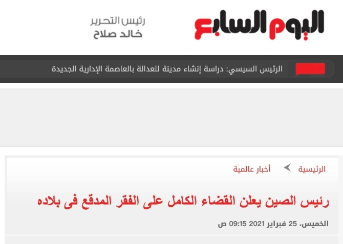 △埃及《七日报》关注中国消除绝对贫困