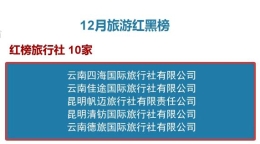 昆明信息港讯 记者李丽朱 3月2日,昆明市文化和旅游局发布1月红黑榜信息,据公告显示,1月,10家旅行社登上红榜、15家旅行社以及4名工作人员被列入黑榜。