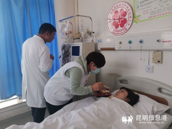 去年12 月,小丁接到云南省红十字会的工作人员打来的电话,她与一位白血病患者初配成功。回到家后,小丁把配型成功的事告诉了家人,因她父母还不太懂捐献造血干细胞的流程,想到她还未婚未育,父母很是担忧,不同意她做造血干细胞捐献,为了不让父母担忧,此次小丁老师瞒着父母来昆明偷偷捐献,她说“我知道捐献造血干细胞并不会对身体形成伤害,但我的父母还是担心,所以我这次是瞒着他们来的,因为我知道对方是个6岁的小女孩,和我侄子年纪相仿,一想到这么可爱的孩子若得不到合适的造血干细胞,她就有可能失去生命,我就很心疼,所以无论如何我都会救她的!”