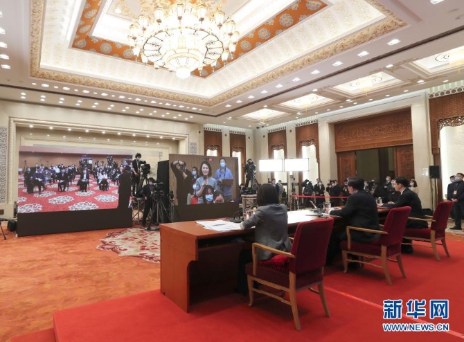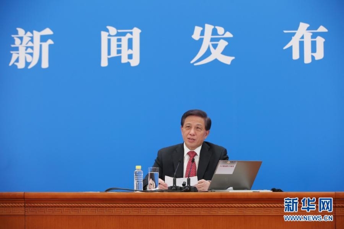 3月4日晚,十三届全国人大四次会议新闻发布会在北京人民大会堂新闻发布厅举行,大会发言人张业遂就会议议程和人大有关工作回答中外记者提问。新华社记者 金立旺 摄