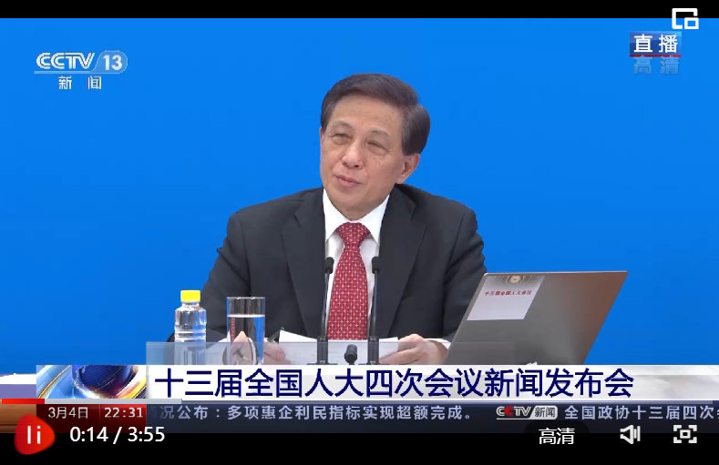 今天(3月4日)晚上,十三届全国人大四次会议举行新闻发布会,大会发言人张业遂就大会议程和人大工作相关问题回答中外记者提问。