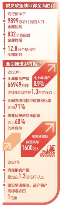 脱贫攻坚取得胜利后,要全面推进乡村振兴,这是“三农”工作重心的历史性转移。代表委员表示,要乘势而上、再接再厉、接续奋斗,巩固和拓展脱贫攻坚成果,全面推进乡村振兴,加快农业农村现代化,让广大人民群众获得感、幸福感、安全感更加充实、更有保障、更可持续。