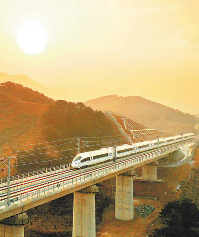 1月22日,京哈高铁京承段开通首日,一列高铁列车行驶在北京密云巨各庄段。“十三五”时期,我国基础设施不断改善。四通八达的交通运输网络让百姓出行更顺畅,“流动的中国”展现了繁荣发展的活力。本报记者 贺 勇摄