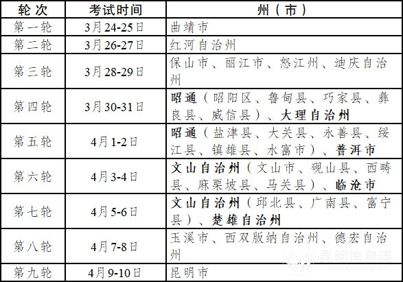 据悉,如遇不可抗拒因素考试无法正常进行时,考试时间顺延。考生关注云南省招考频道(https://www.ynzs.cn/)、云南省招生考试院微信公众号发布的有关信息,按要求做好相关工作。