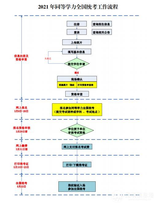 昆明信息港讯 实习记者邓国梅 3月5日,记者从云南省招生考试院获悉,2021年同等学力人员申请硕士学位外国语水平和学科综合水平全国统一考试(简称“同等学力全国统考”)将于5月23日举行。3月8日至26日可通过信息平台进行网上报名,5月10日至23日可下载打印准考证。考试当天,9:00—11:30为外国语水平考试,14:30—17:30为学科综合水平考试。
