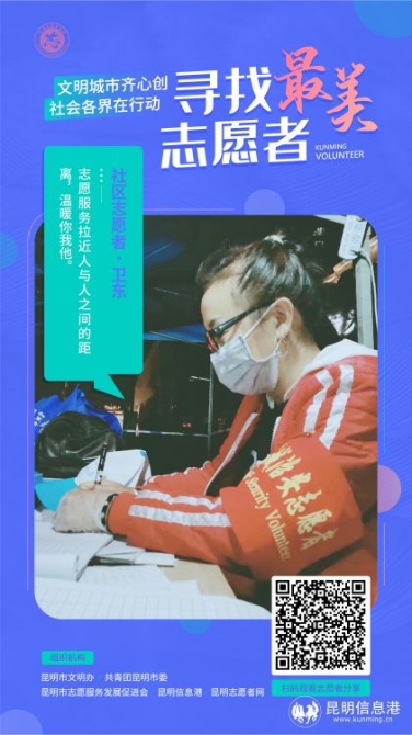 在昆明市文明办、共青团昆明市委的指导下,昆明信息港、昆明志愿者网、昆明志愿服务发展促进会联合开展了“寻找最美志愿者”志愿服务先进典型线上分享会。十期线上分享会邀请到14位不同年龄、不同行业的春城志愿者,在线讲述自己的志愿服务故事,分享自己参与志愿服务的感受。