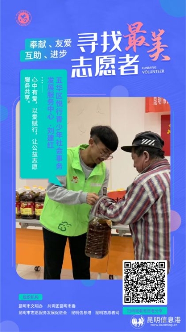据昆明志愿者网数据显示,昆明市有实名注册志愿者1206760人,志愿服务组织4827个,全市累计发起志愿服务项目96080个,人均志愿服务时长达98.29小时。活跃在城市大街小巷的志愿者,成为了昆明一条靓丽的风景线。