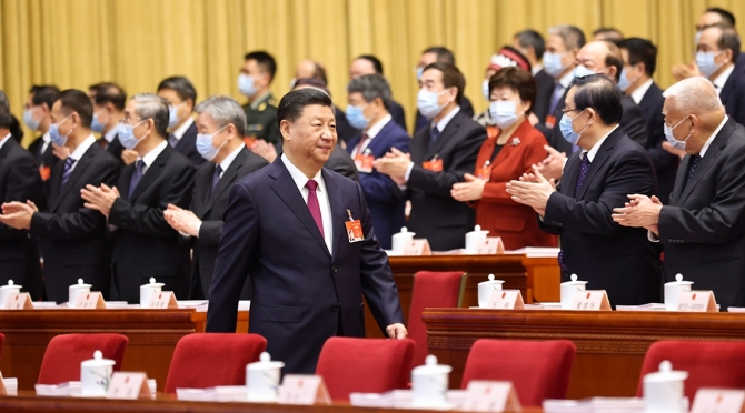 习近平、李克强、汪洋、王沪宁、赵乐际、韩正、王岐山和大会主席团成员在主席台就座。