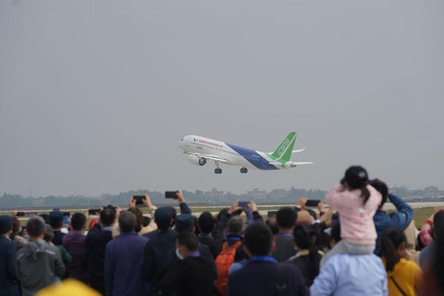 让大飞机早日翱翔蓝天,是几代中国人的梦想。作为我国首次按照国际适航标准研制的150座级干线客机,C919于2007年正式立项,2010年展出样机,2017年实现首飞。目前,C919已获815架订单,正朝着取证交付的目标向前推进。这是在2020南昌飞行大会上,国产大飞机C919首次在航展上进行飞行表演(2020年10月31日摄)。