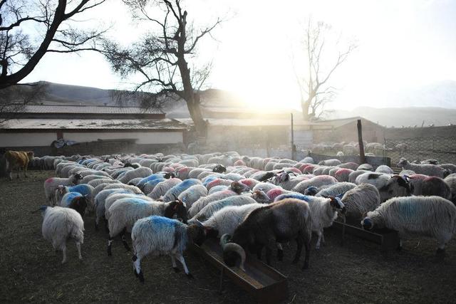 2015年,青海海北藏族自治州祁连县鸽子洞村获得100万元精准扶贫专项资金,在全村商议下,这笔款项用于成立养殖合作社。赵学文与村民桑杰获得合作社承包经营权。经过半年努力,合作社向全村贫困户分红5.6万元,而赵学文一家年收入也超过5万元。2019年5月,祁连县摘掉贫困县帽子。这是青海省海北藏族自治州祁连县扎麻什乡鸽子洞村村民赵学文家饲养的羊群(2020年12月9日摄)。