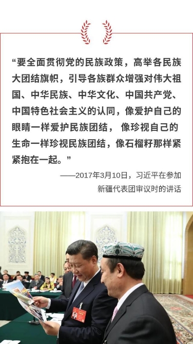 2017年3月10日,习近平参加十二届全国人大五次会议新疆代表团的审议。2017年春节前夕,习近平给家住和田地区的库尔班·吐鲁木的女儿回信,向她和家人及乡亲们送上祝福,希望各族群众在党的领导下共同创造新疆更加美好的明天。来自和田地区的买买提依布热依木·买买提明代表拿出库尔班·吐鲁木家人的照片给总书记看,总书记仔细端详,一一询问库尔班·吐鲁木家人工作生活情况,并请买买提依布热依木·买买提明转达对他们的问候。