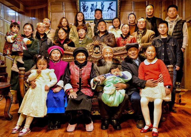 年逾九十的叶德祥老人家住云南香格里拉市建塘镇金龙社区,全家四代20多口人中有四个民族,大家和谐融洽。从新中国成立初期立下的民族团结誓词碑到“直过民族”整族脱贫,云南各族人民像石榴籽那样紧紧抱在一起,团结一心谋发展,斗志昂扬阔步在新征程上。这是叶德祥老人的全家福照片(2018年2月9日摄)。