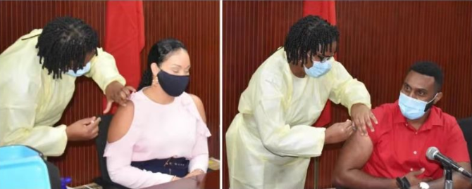 多米尼克政要现场接种疫苗(图片由驻多米尼克使馆提供)