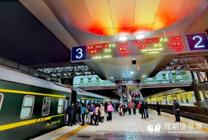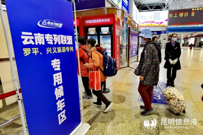 昆明信息港讯 记者上官艳君 3月6日,记者从中国铁路昆明局集团有限公司获悉,3月5日23时13分,348名游客乘坐Y802次“观金色罗平、探兴义幽境”赏花踏青专列从昆明站启程,赶赴一场与春天的约会。这是云南省首个铁路旅游专列联盟的首趟春游专列。
