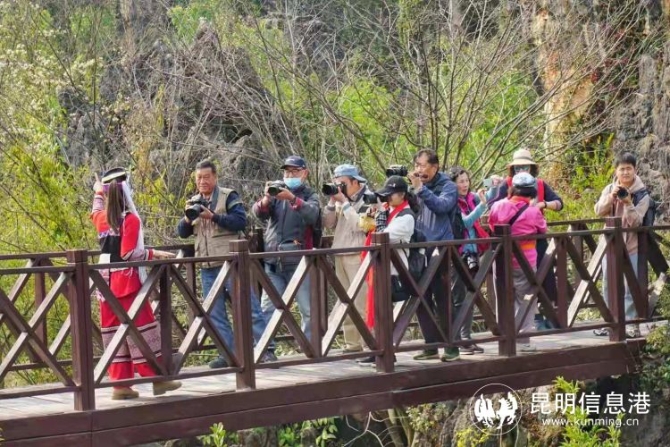 昆明信息港讯 记者李红鸾 杨雁 3月7日,在“三八妇女节”来临之际,昆明信息港组织30余名彩龙网龙到石林杏林大观园拍春花、赏美景、品美食,同时探寻悠远的中医药文化,品味中华医药的博大精深,用镜头记录这个美好的春天。