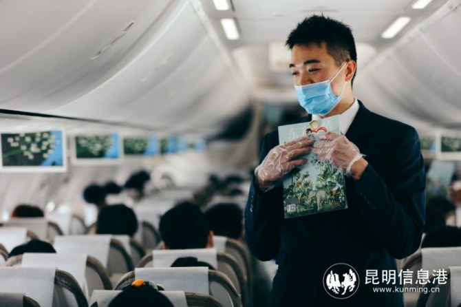 12时15分,飞机平飞,乘务组忙完服务流程后,乘务长孙兴开始做客舱广播:“各位旅客大家好,今天也许你们已经发现,所有的乘务员都是男乘务员,一个空姐也没有,空姐都哪去了?这不快过节了吗,空姐都去休息了,我们男同胞顶上来了,不过请大家不必担心,我们东航的男乘务员也能顶半边天。而且,今天我们不仅给大家带来了满满的诚意,还为各位旅客带来了小惊喜......”在乘务长的广播声中,四名男客舱乘务员已经走进客舱,向旅客致礼,并开始讲解此次活动的具体方法。