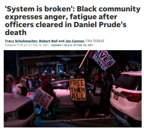 而在更早的去年3月,罗切斯特市还发生了非洲裔男子丹尼尔·普鲁德遭警方暴力执法后窒息死亡事件。此事甚至早于去年5月的弗洛伊德遭“跪杀”事件。然而就在上月22日,当地检方却对普鲁德事件的当事警察作出“不予起诉”的决定,引发民众新一轮抗议。