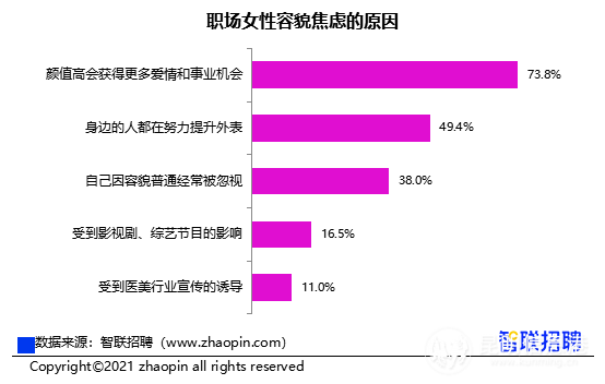 谈及容貌焦虑的原因,73.8%的受访女性表示,颜值高会获得更多爱情与事业机会,49.4%的表示身边的人都在努力提升外表,38%的则表示容貌普通经常会被忽视。(昆明信息港 记者江枫)