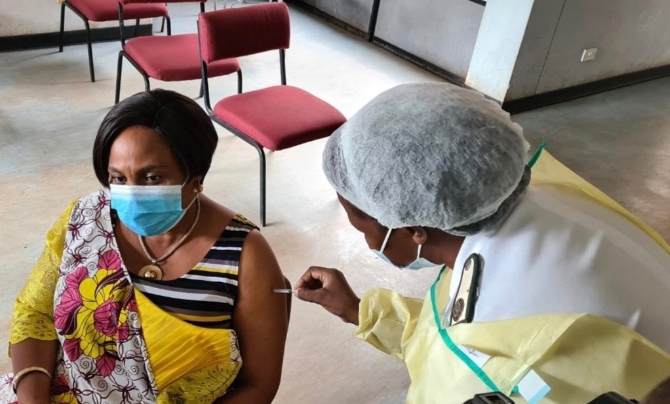 当地时间8日,津巴布韦政府新闻、宣传和广播服务部部长兼政府发言人莫妮卡·穆茨万古瓦女士于首都哈拉雷市中心附近的威尔金斯医院接种了中国生产的新冠疫苗,并向在场的媒体记者发表讲话。